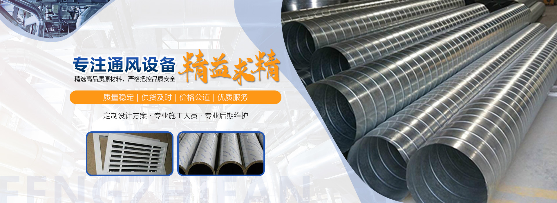 安徽風之范通風設備有限公司,是北京恒通偉業通風設備有限公司再創的新臺階,多年來,公司員工憑著“誠信敬業、團結拼搏、勇于開拓、務實進取”的企業精神,先后承接了多項重點工程項目,使公司健康穩步發展。現由于公司的壯大,業務的拓展,又于2016年底,成功坐落于安徽省合肥市包河區。本公司生產設備精良,技術力量雄厚,質保體系完善!讓用戶體驗到,貼心的服務,無憂的售后!風之范是以加工、銷售、安裝及維護于一體的現代化企業,同時以“創未來之風、營誠信之范”為核心理念,面向全國各省市,大量生產鍍鋅板、不銹鋼、玻璃鋼、酚醛復合等通風管道、螺旋風管、廚房排煙罩、油煙凈化器、各種風機風柜、風口風閥、靜壓箱等配件設施。廣泛承接商場、工廠、酒店、寫字樓、地下室等,消防排煙工程、除塵凈化工程、室內通風工程、暖通空調工程、廚房排煙凈化工程。我們力求上進,追求,歡迎各界人士技術指導,經濟合作,共創美好明天!